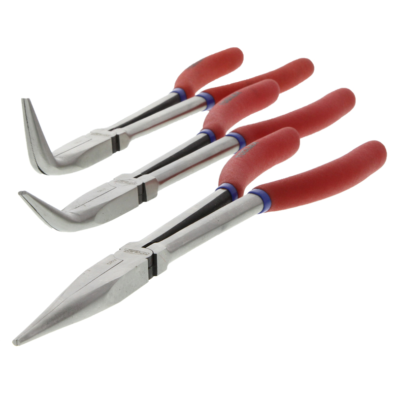 Plier Long Nose 3 Piece Set: 11" (280mm) Straight, 45 & 90 Degree Long Series